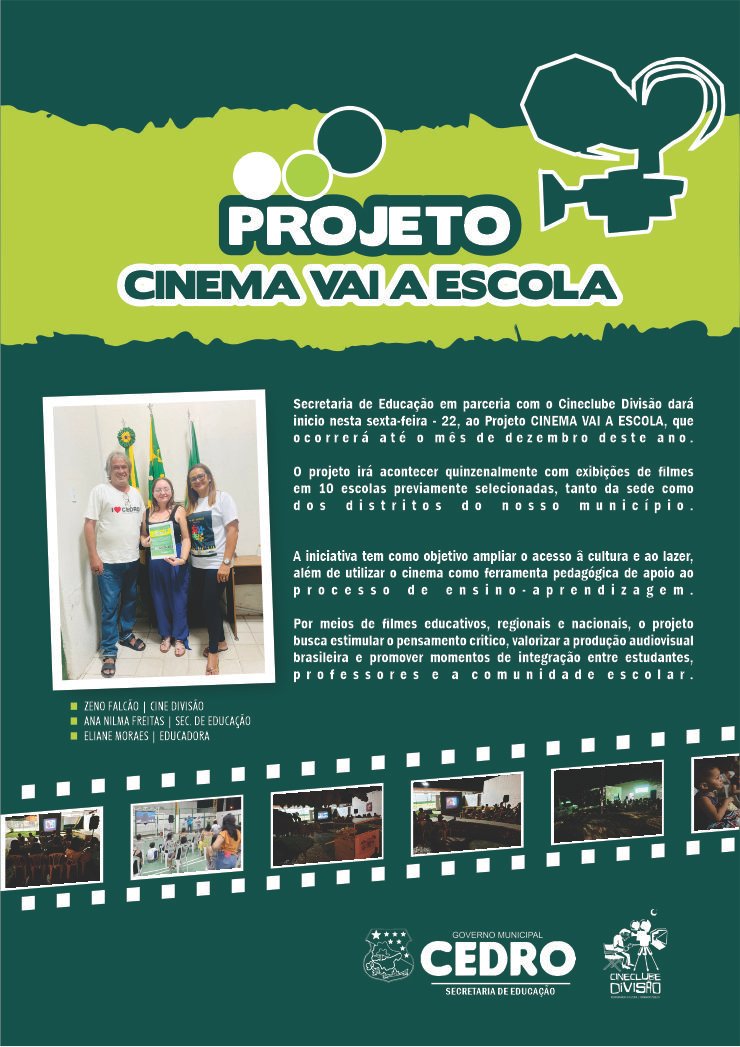 A importância do Cineclube Divisão para a cidade de Cedro e para as regiões menos assistidas é imensurável. Mais do que exibir filmes, dando sempre prioridade as produções nacionais, o projeto promove o acesso à cultura, estimula a formação crítica do público e reafirma o papel do cinema como agente de transformação social.